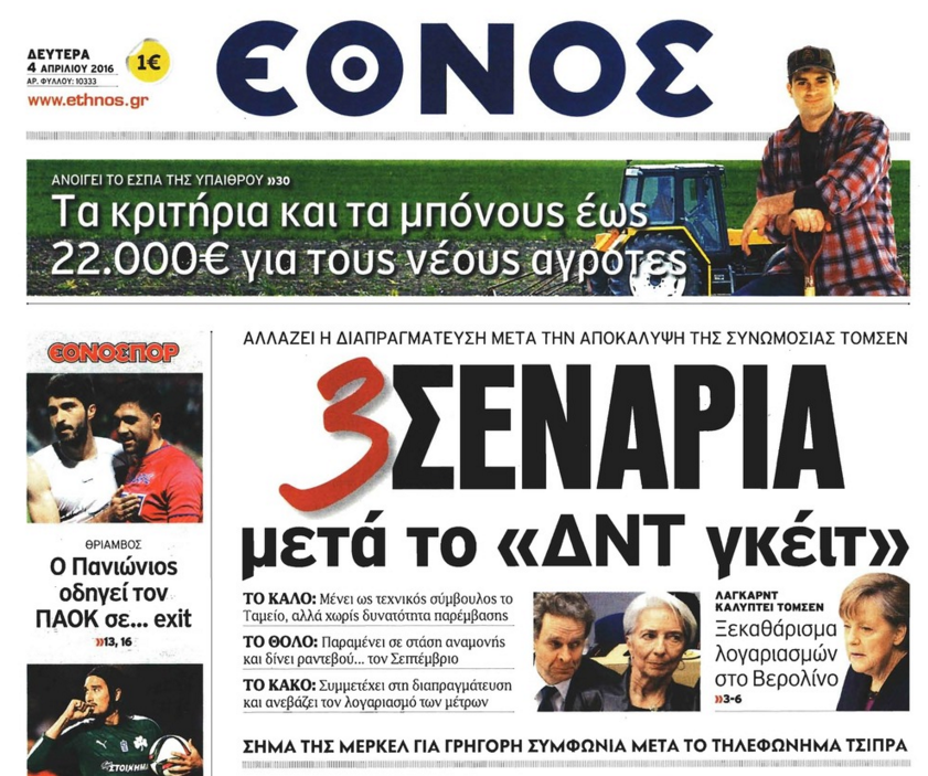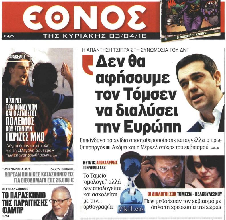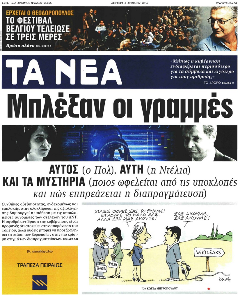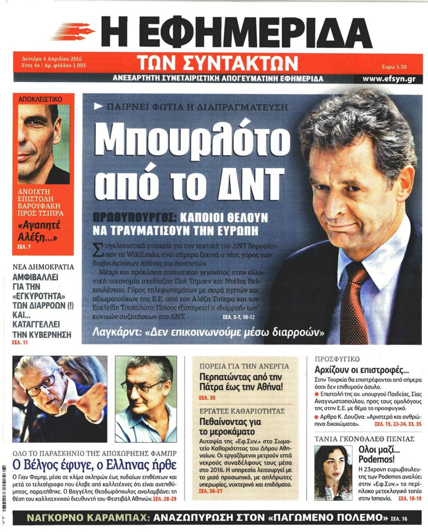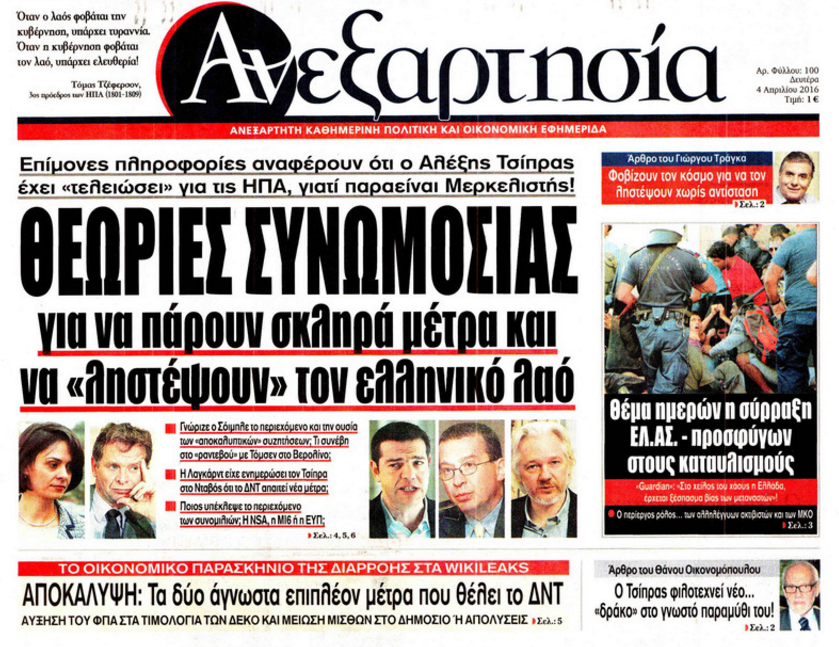 On Saturday 2 April 2016 WikiLeaks published the release: “IMF Internal Meeting Predicts Greek ‘Disaster’, Threatens to Leave Troika” https://wikileaks.org/imf-internal-20160319/