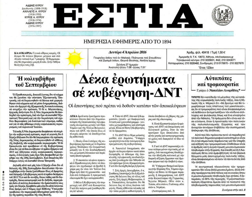 The story made Greek Newspapers Front pages, here is a compilation of some of them: